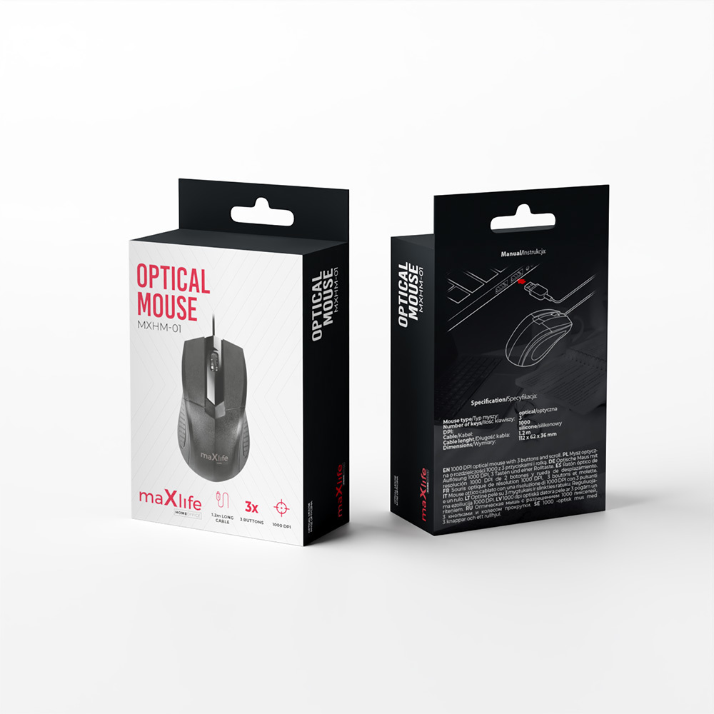 Maxlife – Home Office MXHM-01 Optical mouse 1000 DPI 1,2m – Black