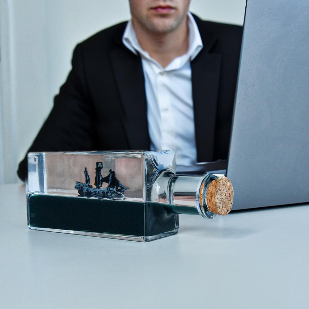 Αναβαθμίστε το γραφείο ή το χώρο σας με αυτό το εντυπωσιακό και γαλήνιο διακοσμητικό: ένα πειρατικό καράβι «που δεν βουλιάζει», αιωρούμενο μέσα σε υγρό περιβάλλον.