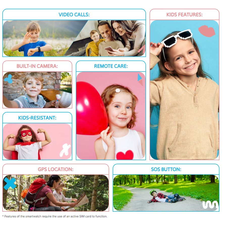 Σε περιπτώσεις έκτακτης ανάγκης, το παιδί μπορεί να χρησιμοποιήσει το κουμπί SOS, το οποίο συνδέεται αμέσως με τις καθορισμένες επαφές έκτακτης ανάγκης. Σε προβληματικές καταστάσεις, ένας γονέας μπορεί να ενεργοποιήσει εξ αποστάσεως την κάμερα ή το μικρόφωνο στο smartwatch για να ελέγξει τι συμβαίνει.