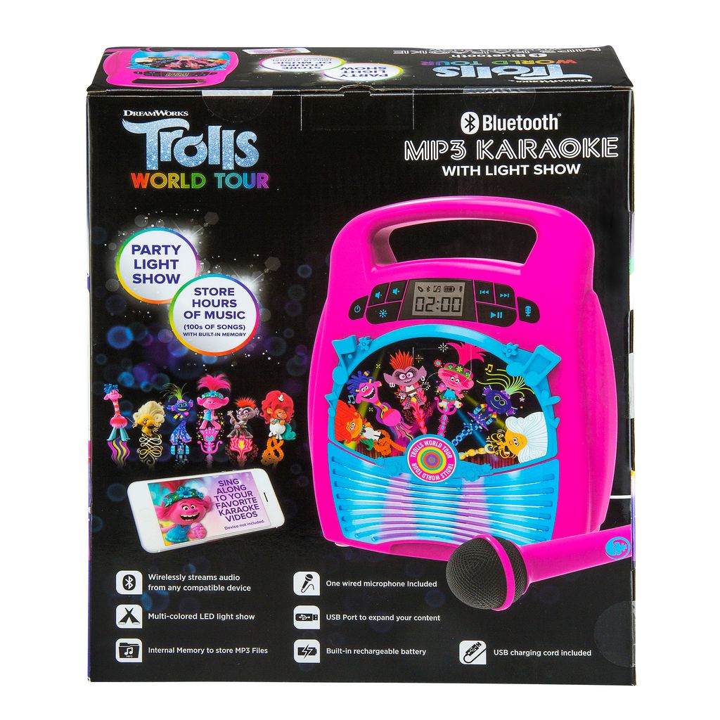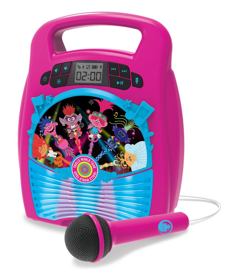 eKids Trolls 2 Bluetooth MP3 Boombox Karaoke & Ασύρματο Μικρόφωνο για παιδιά και εφήβους με ενσωματωμένη μουσική, φωτισμό, Sound Effects (TR-553) (Γαλάζιο/Μωβ)