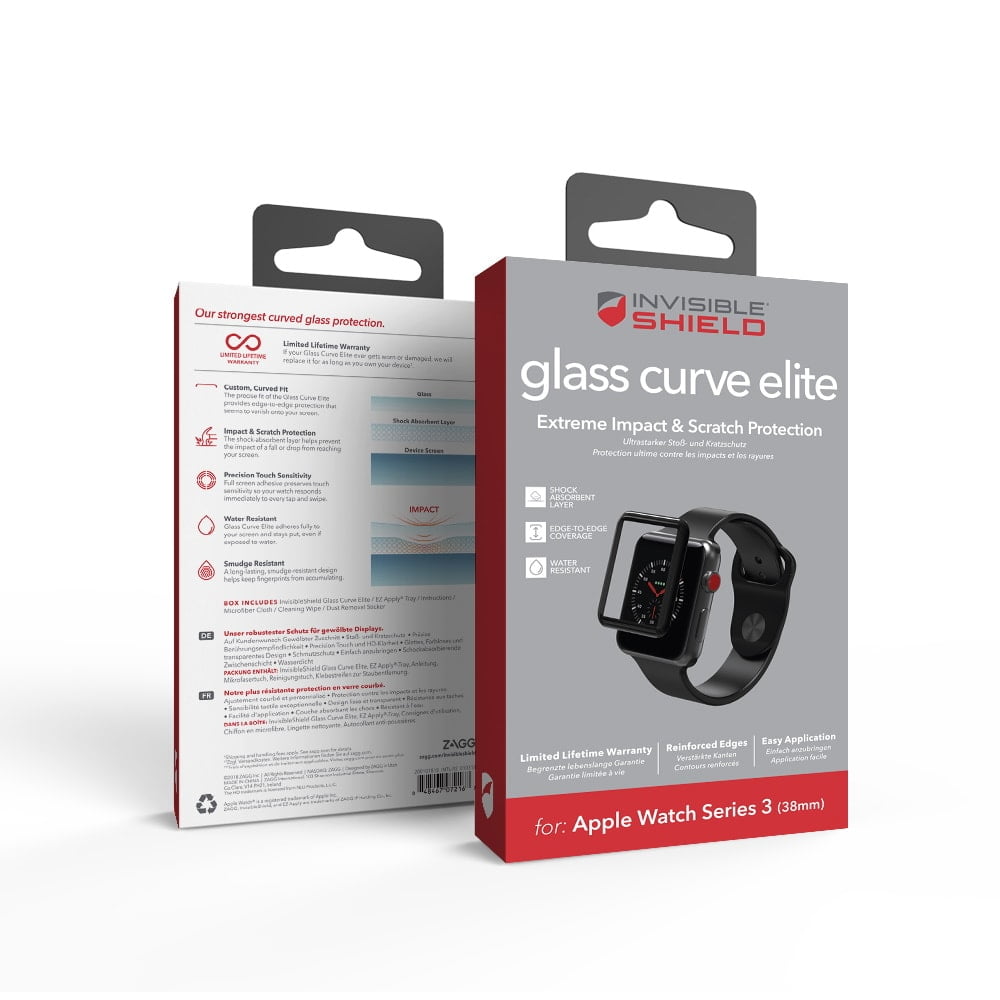Το διάφανο γυαλί της ZAGG, InvisibleShield® Glass Curve Elite™ είναι μια αόρατη ασπίδα προστασίας Edge to Edge για την οθόνη του δικού σου Apple Watch Series 3 (38mm).
