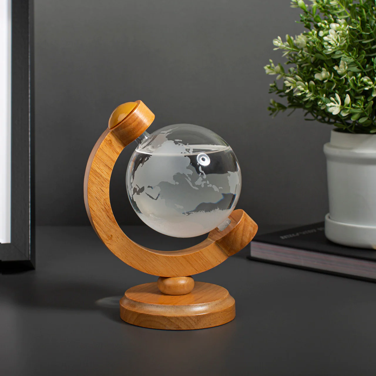Για κάθε λάτρη της εξερεύνησης των καιρικών φαινομένων αλλα και γι’αυτούς που θέλουν να εμπλουτίσουν τη διακόσμηση του σπιτιού τους . Αυτή η γυάλινη σφαίρα σε σχήμα υδρογείου είναι ένα όμορφο βαρόμετρο που προβλέπει τον καιρό. Καθώς ο καιρός αλλάζει, οι κρύσταλλοι θα αλλάξουν σχηματισμό και το γυαλί θα θολώσει!