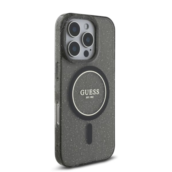 Guess Magsafe “Glitter with Pearl Strap” Hard Case Θήκη προστασίας από σκληρό πλαστικό – iPhone 16 Pro (Μαύρο – GUHMP16LHGCRELSK)