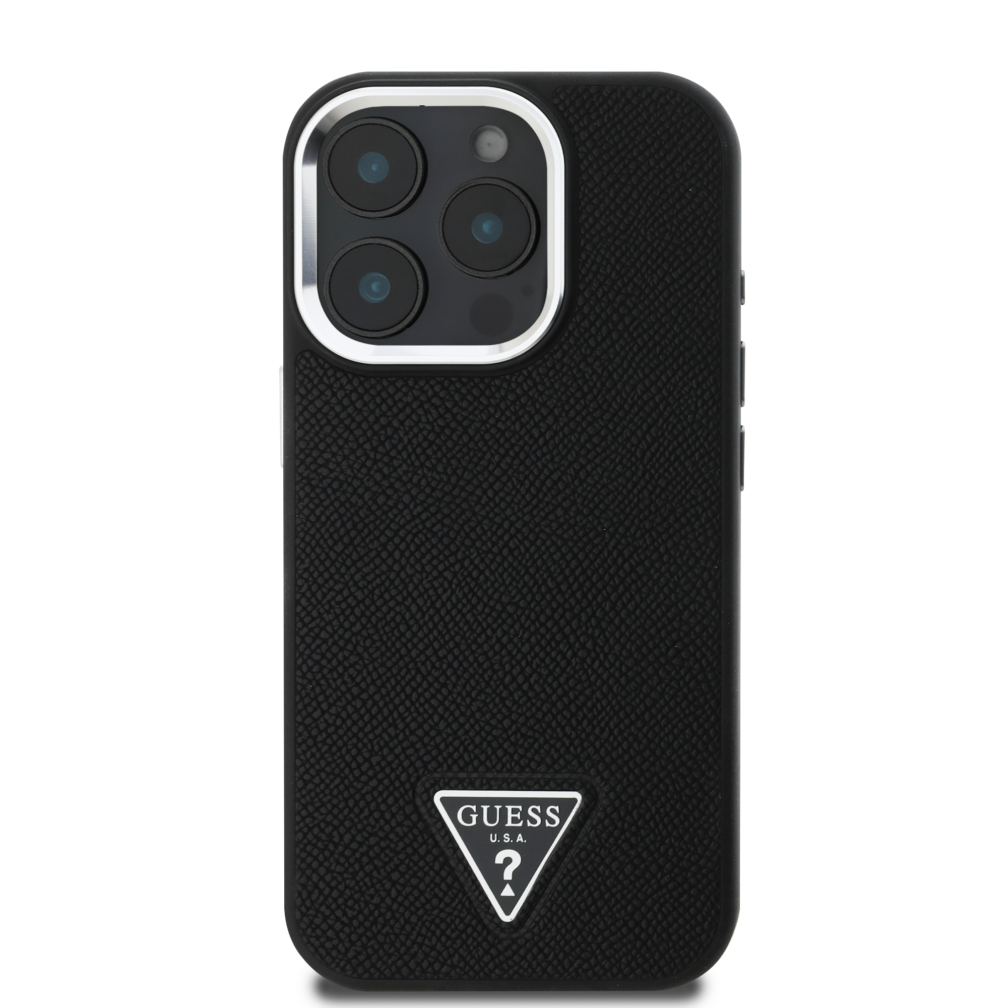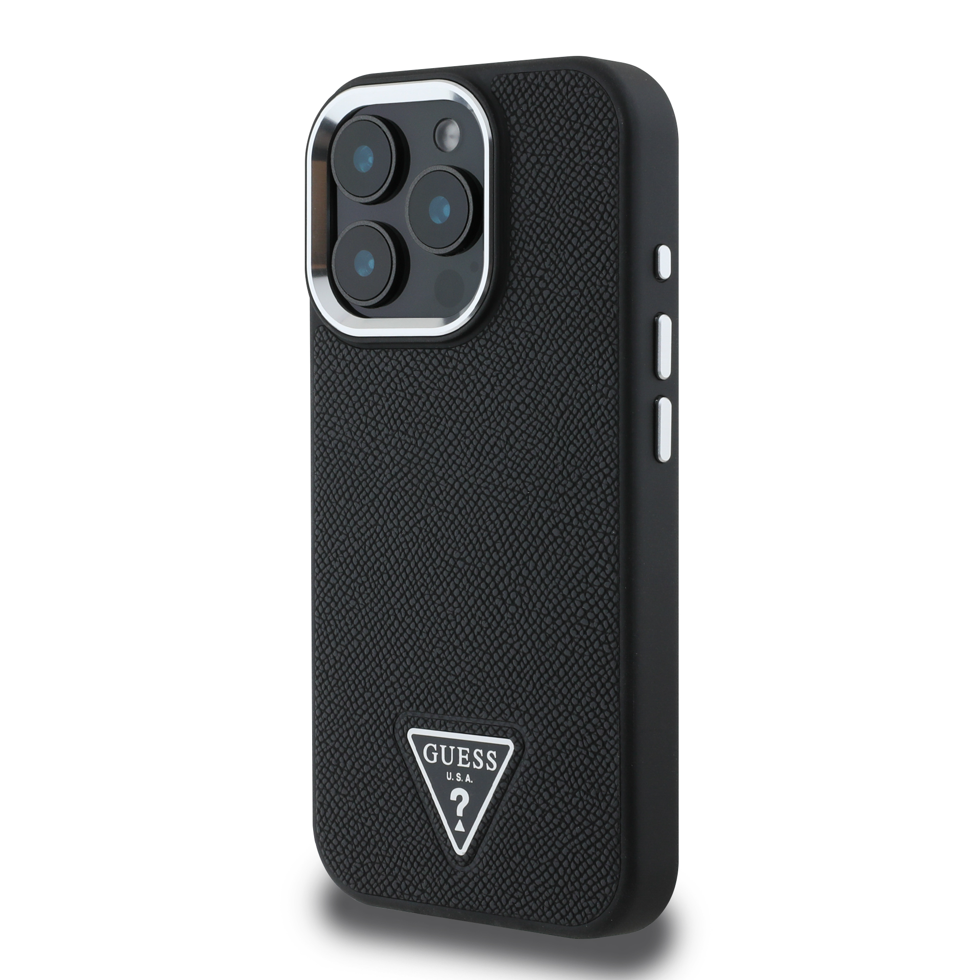 Guess “Triangle Logo” Grained PU Case Θήκη προστασίας από δερματίνη – iPhone 16 Pro Max (Μαύρο – GUHMP16XPGTSPSK)