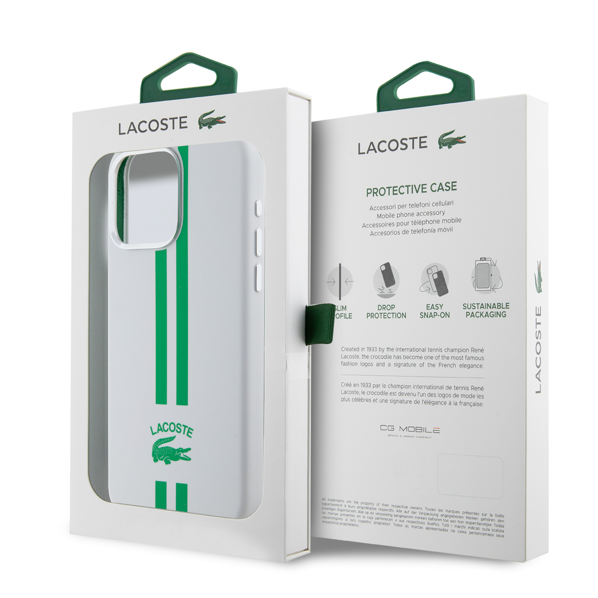 • Διακριτικός σχεδιασμός με το λογότυπο Lacoste: Κλασικό στυλ που αποπνέει ποιότητα και κομψότητα, χωρίς να υπερκαλύπτει τη λεπτότητα του τηλεφώνου.